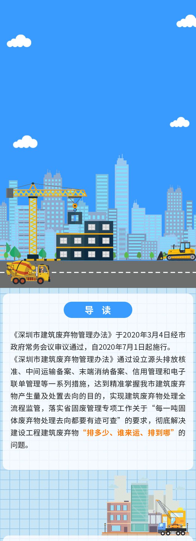 《深圳市建筑廢棄物管理辦法》已經2020年3月4日市政府六屆二百零六次常務會議審議通過,現予發布,自2020年7月1日起施行。