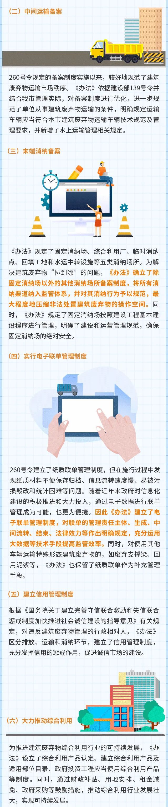 建設行政主管部門(以下簡稱建設主管部門)負責審批本部門監管的建設工程建筑廢棄物排放核準,依法追究建設、施工等相關單位違法處置建筑廢棄物行為的法律責任,監管工程施工現場并督促施工單位文明施工;會同規劃和自然資源及相關部門制定消納場所(臨時消納點、回填工地、水運中轉設施除外)規劃,負責對消納場所消納建筑廢棄物、遵守聯單制度等運營及管理情況進行監管。