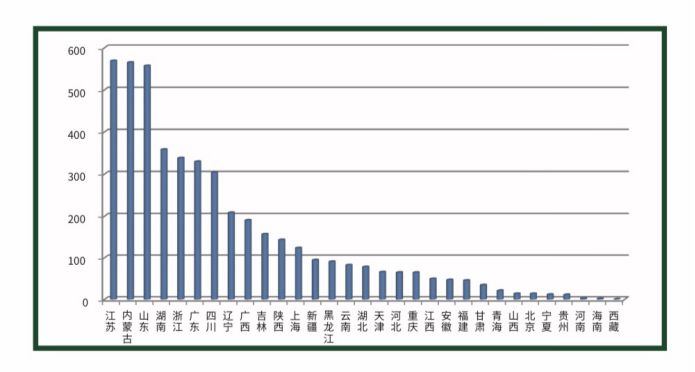 ▲圖1 2018年各省(區、市)工業危廢產生量